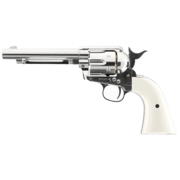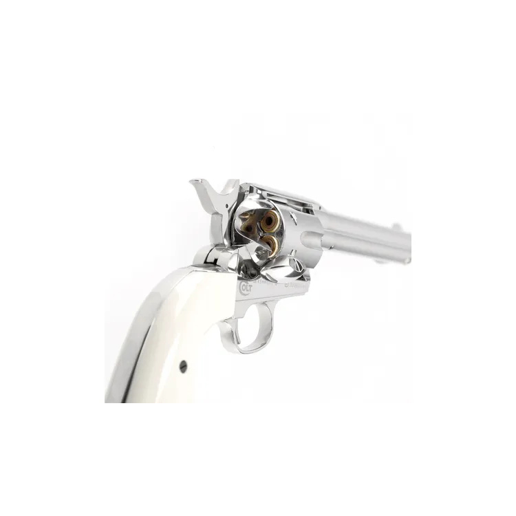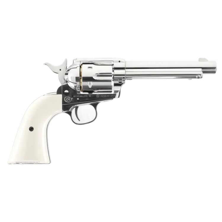 Αυτό το αντίγραφο του θρυλικού «Peacemaker» έγινε σε σύντομο χρονικό διάστημα παγκόσμιο αγαπημένο – και όχι μόνο στους φίλους των western. Το Colt Single Action Army Revolver, όπως είναι η επίσημη ονομασία του, τροφοδοτείται από αμπούλα CO₂ και χρησιμοποιεί έξι μεταλλικούς κάλυκες φόρτωσης για ρεαλιστική βολή ατσάλινων BB. Το Colt SAA διαθέτει κάννη 5,5 ιντσών και ξεχωρίζει με το κομψό νικελωμένο φινίρισμα.