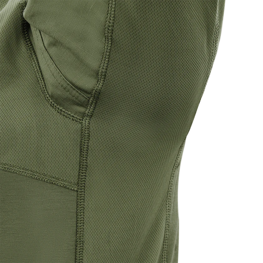 Το ύφασμα απομακρύνει αποτελεσματικά την υγρασία (moisture-wicking), διατηρώντας το σώμα στεγνό, ενώ τα mesh πάνελ στις μασχάλες ενισχύουν τον αερισμό. Τα μανίκια raglan αυξάνουν την ελευθερία κινήσεων, καθιστώντας το ιδανικό για έντονη δραστηριότητα ή επιχειρησιακή χρήση.