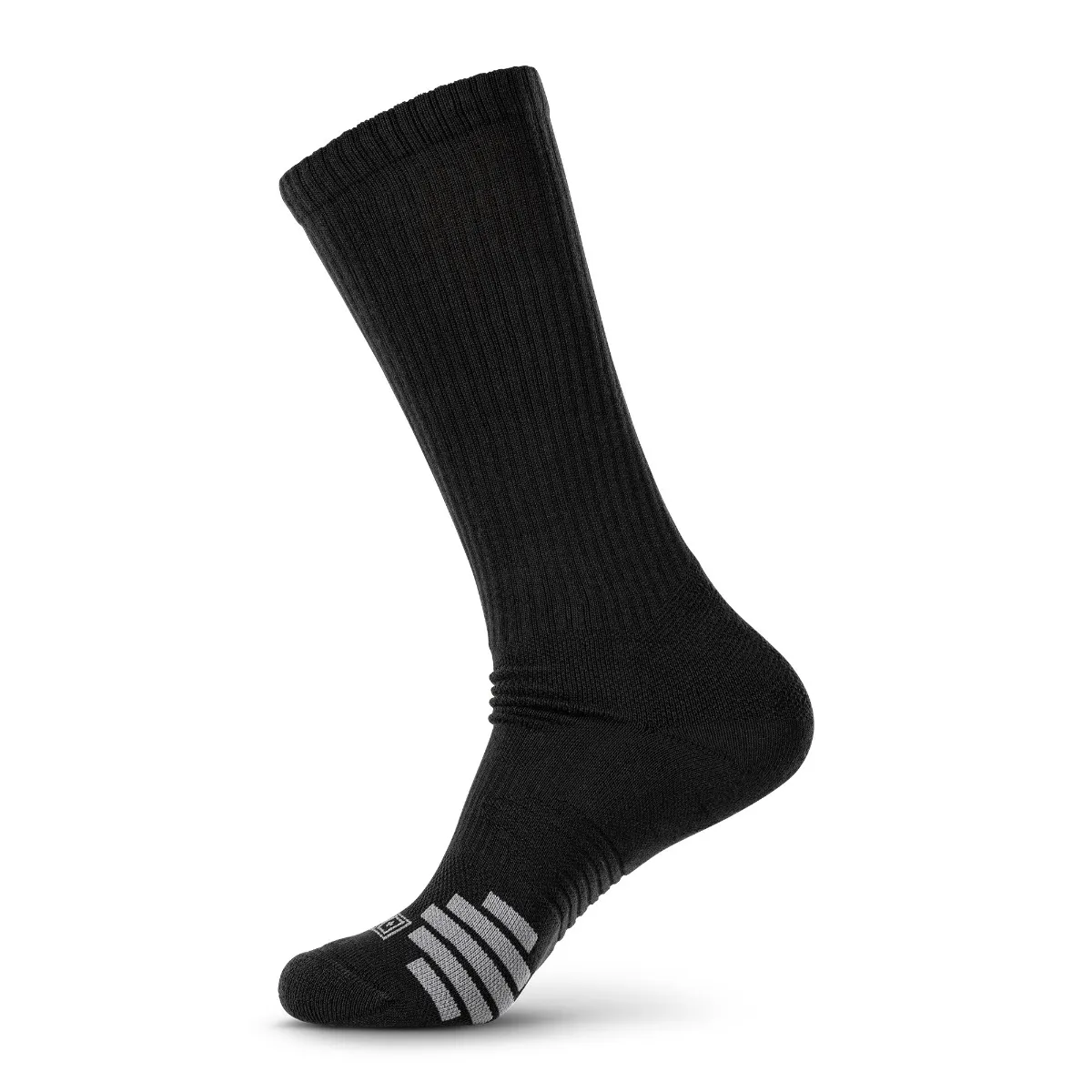 Οι επαγγελματικού επιπέδου κάλτσες Duty Ready Plus OTC προσφέρουν άνεση όλη την ημέρα και σταθερή εφαρμογή χωρίς να γλιστρούν, χάρη στο επάνω τελείωμα NO QUIT και την αναπνέουσα πλέξη mesh. Το ύψος Over The Calf εξασφαλίζει πλήρη κάλυψη και επιπλέον υποστήριξη στο πόδι. Η ενισχυμένη απορρόφηση κραδασμών στη φτέρνα και στα δάχτυλα, με ζωνοποιημένη κατασκευή, σε συνδυασμό με την ειδική υποστήριξη καμάρας, διατηρούν τα πόδια άνετα ανεξάρτητα από τη διάρκεια της ημέρας. Οι κάλτσες διαθέτουν ιδιότητες αντιοσμής και απομάκρυνσης υγρασίας.