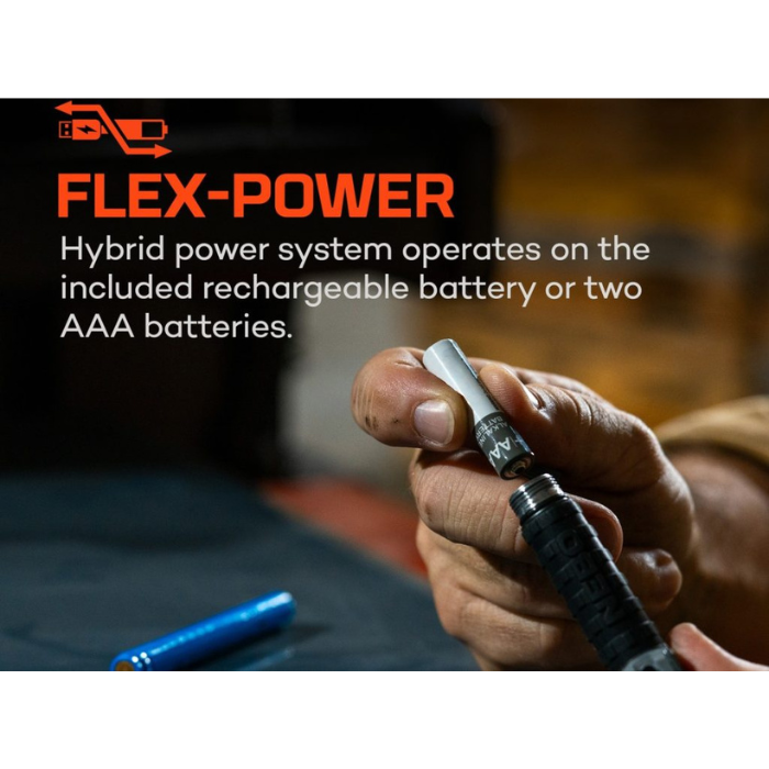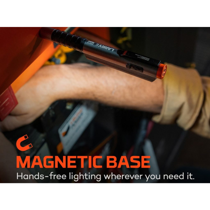 O Larry 500 FLEX είναι ένας μικρόσωμος φακός 500 lumens που χρησιμοποιεί τεχνολογία Flex-Power, η οποία επιτρέπει στον φακό να λειτουργεί με την επαναφορτιζόμενη μπαταρία 10850 που περιλαμβάνεται ή με 2 αλκαλικές μπαταρίες AAA.                                                                                                                          Είναι εξοπλισμένος με ατσάλινη κλιπ τσέπης και ισχυρή μαγνητική βάση για βολική λειτουργία του φακού με τα χέρια ελεύθερα.