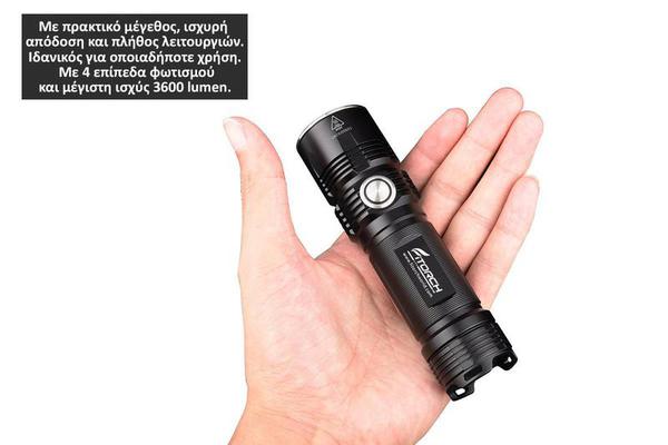 Φακός LED 3600 lumen με 4 επίπεδα φωτισμού, strobe και SOS.