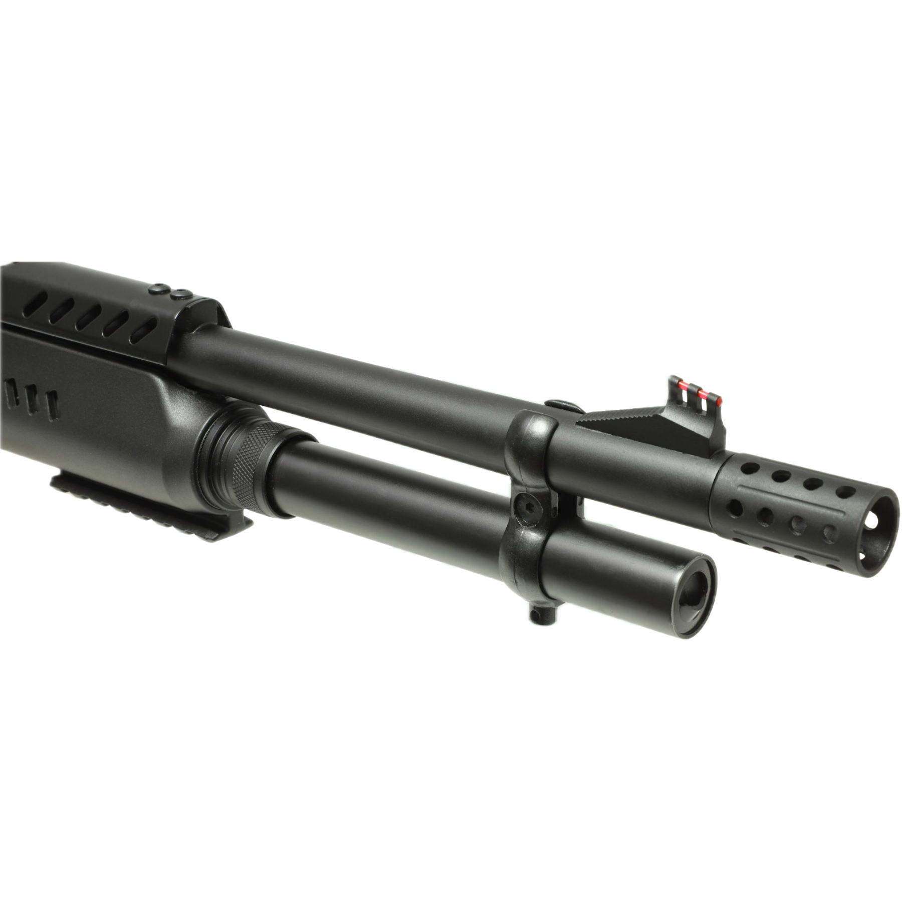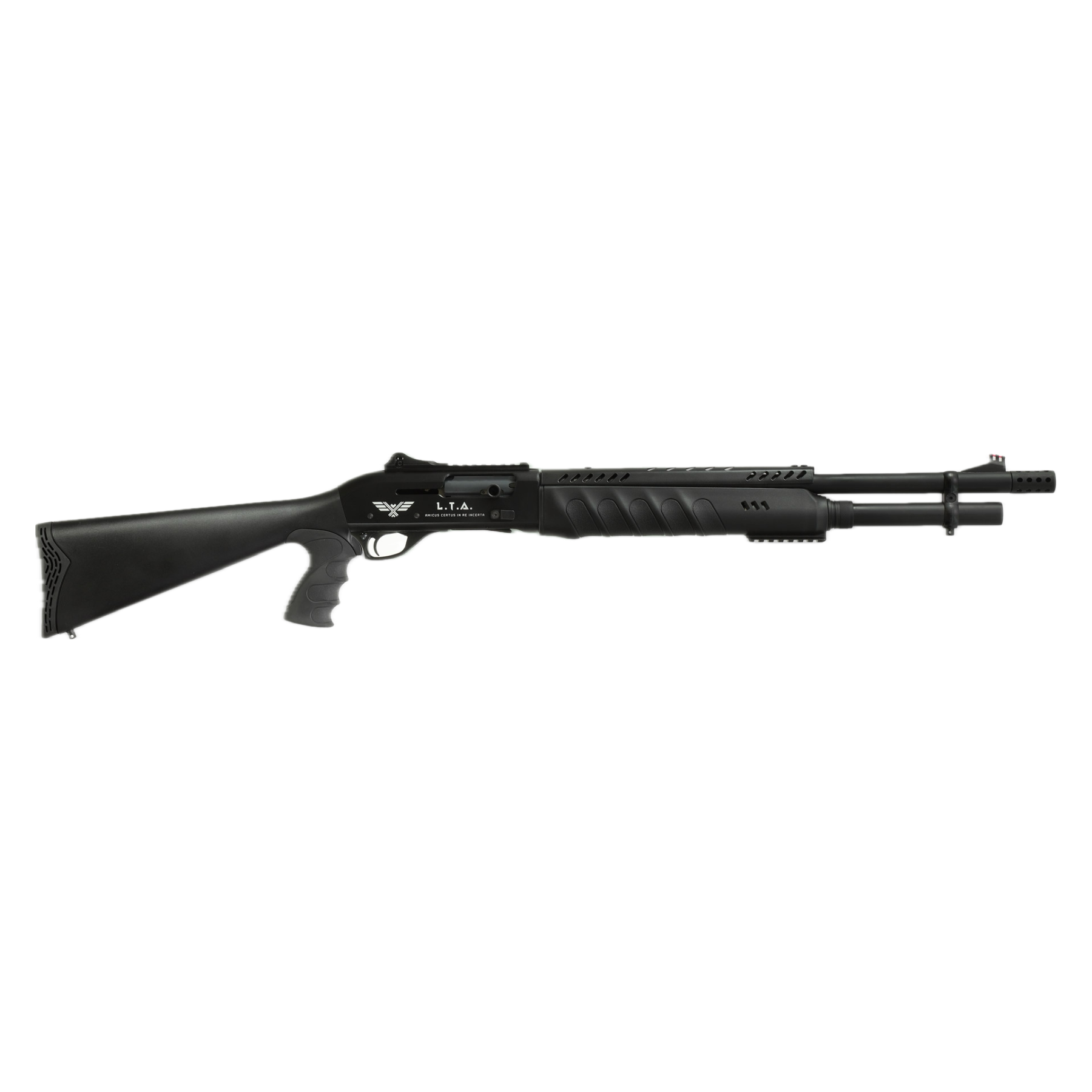 Λειτουργεί με σύστημα αερίων για ομαλή επαναγέμιση και μειωμένη ανάκρουση, ενώ το συνθετικό κοντάκι με πιστολοειδή λαβή προσφέρει βελτιωμένο έλεγχο και εργονομία. Τα σκοπευτικά Ghost Ring με οπτική ίνα επιτρέπουν γρήγορη και ακριβή στόχευση, ενώ η ράγα Picatinny στη βάση και στην πάπια δίνει πλήρη ευελιξία για τοποθέτηση οπτικών και αξεσουάρ.