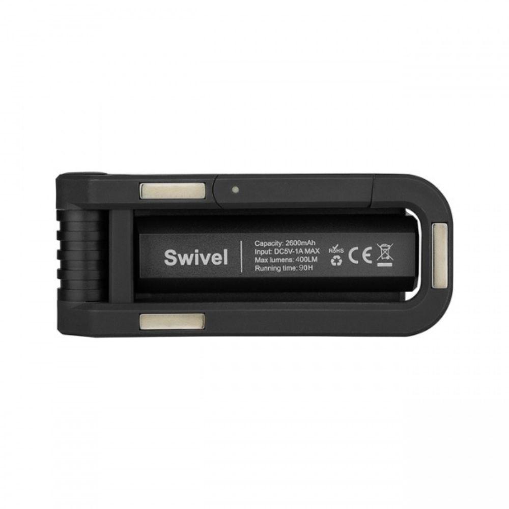 Και οι δύο πηγές φωτός είναι ρυθμιζόμενες για να καλύψουν τις συγκεκριμένες ανάγκες σας. Τροφοδοτείται από μπαταρία 2600 mAh που είναι επαναφορτιζόμενη μέσω θύρας Type-C, το προϊόν λειτουργεί έως και 90 ώρες. Διαθέτει επίσης ρυθμιζόμενη 180° βάση σε στυλ κλιπ με μαγνήτες στο εσωτερικό για βολικές χρήσεις hands-free. Γύρω από τη μονάδα COB υπάρχει μια λωρίδα που λάμπει στο σκοτάδι για να σηματοδοτήσει την παρουσία του προϊόντος. Το στιβαρό και καλά σφραγισμένο αμάξωμα ABS κρατάει καλά από τις καθημερινές κρούσεις και τις πιτσιλιές νερού. Ευέλικτο, στιβαρό και ευέλικτο, το Swivel θα καλύψει τις εργασίες σας σε διάφορες συνθήκες εργασίας.