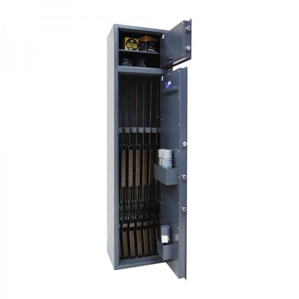 Ο κάτω χώρος διαθέτει 2 κινούμενες βάσεις στήριξης τουφεκίων. Χάρη στην σταθεροποίηση τους με μαγνήτη στο πίσω μέρος, μπορούν να τοποθετηθούν σε διαφορετικές κατά βούληση θέσεις. Επίσης η κάτω θύρα εξοπλίζεται με 2 μεταλλικά ράφια κατάλληλα για την αποθήκευση φυσιγγίων, σφαιρών καθώς και αξεσουάρ περιποίησης των όπλων.
