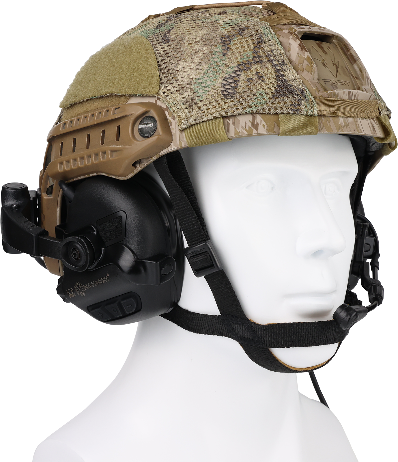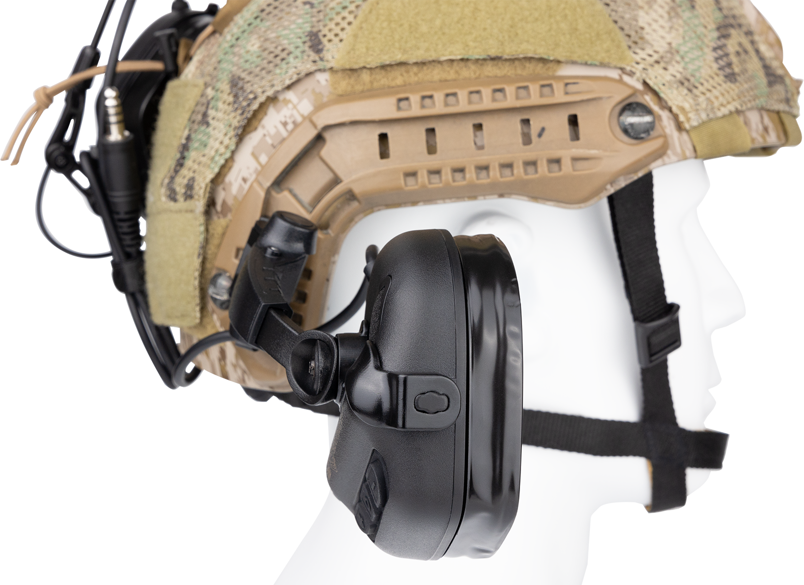 Είναι ένα ψηφιακό ακουστικό βοήθημα ακύρωσης θορύβου που έχει σχεδιαστεί για την προστασία της ακοής στην καθημερινή εκπαίδευση σκοποβολής. Μπορεί να καταστείλει θορύβους που υπερβαίνουν τα 82dB, όπως εκρήξεις ή πυροβολισμούς, ενώ ενισχύει τους περιβαλλοντικούς ήχους. Βελτιώστε την αντίληψή σας για την ομιλία, την κίνηση, τα αεροσκάφη, τα οχήματα, τη λειτουργία των όπλων και τους πυροβολισμούς για την προστασία της ακοής και τη βελτίωση της περιβαλλοντικής ευαισθητοποίησης. Ο αρθρωτός σχεδιασμός επιτρέπει την προσαρμογή σε διαφορετικά συστήματα ανάρτησης. Τα μαξιλαράκια αυτιών από τζελ σφραγίζουν γύρω από τα αυτιά για να εμποδίζουν το θόρυβο ενώ παράλληλα είναι ανθεκτικά στην φθορά. Το σύστημα EMI φιλτράρει αποτελεσματικά τις ηλεκτρομαγνητικές παρεμβολές από άλλες ηλεκτρονικές συσκευές. Οι ηλεκτρονικές ωτοασπίδες  M32 PLUS διαθέτουν αποσπώμενο μικρόφωνο με ρυθμιζόμενη γωνία, καλώδιο TP120 Kevlar και σύνδεσμο στρατιωτικού προτύπου U-174 (ΝΑΤΟ). Συνδέεται με πομποδέκτες για επικοινωνία μέσω του PTT EARMOR® M51/52 (ή άλλου PTT κατά το πρότυπο του ΝΑΤΟ).