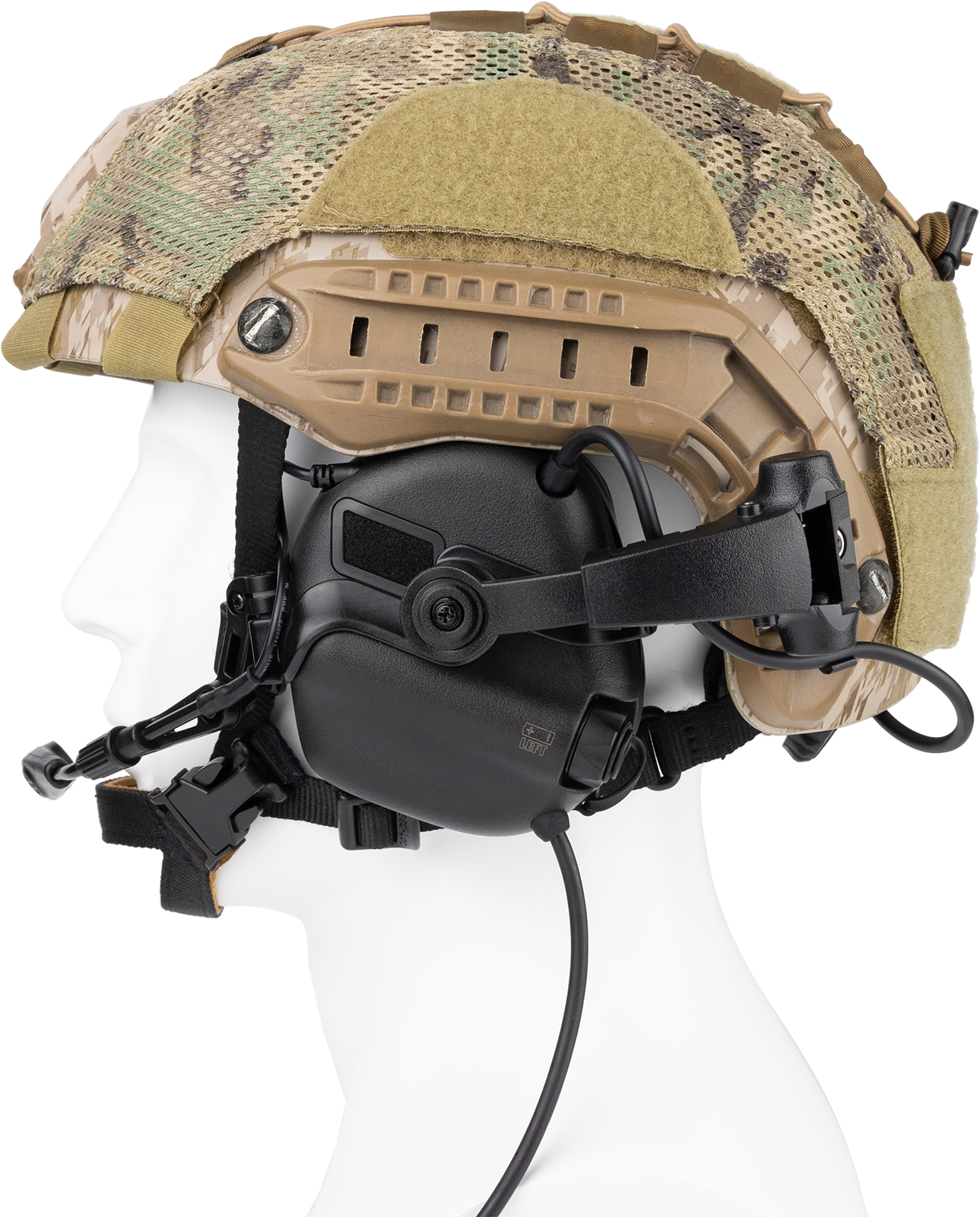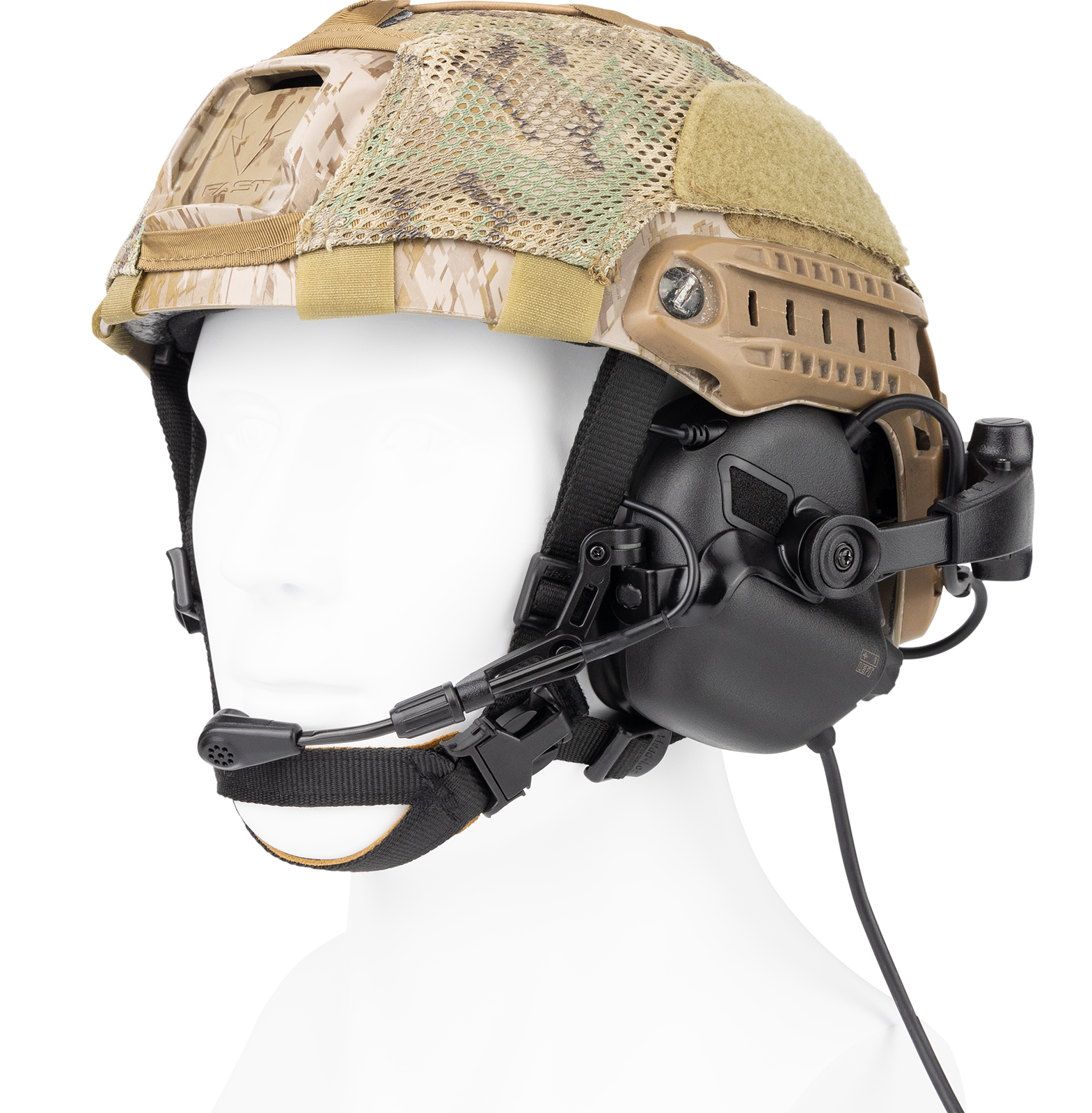 Χρησιμοποιώντας το στρατιωτικό πρότυπο βύσμα 4 ακίδων U174, είναι εύκολο να συνδέσετε το PTT (Push-to-Talk) με έναν πομποδέκτη για επικοινωνία. Ο φιλικός προς το χρήστη σχεδιασμός του αποσπώμενου μικροφώνου επιτρέπει την εγκατάσταση σε οποιαδήποτε πλευρά των ωτοασπίδων σύμφωνα με την προτίμηση του χρήστη για χρήση με το αριστερό ή το δεξί χέρι. Ο αντιανεμικός σχεδιασμός εξασφαλίζει ομαλή επικοινωνία ακόμη και σε περιβάλλοντα με αέρα. Η υποδοχή τοποθέτησης του μικροφώνου επιτρέπει την προσαρμογή του μικροφώνου σε πολλές γωνίες για την επίτευξη της βέλτιστης θέσης για χρήση.