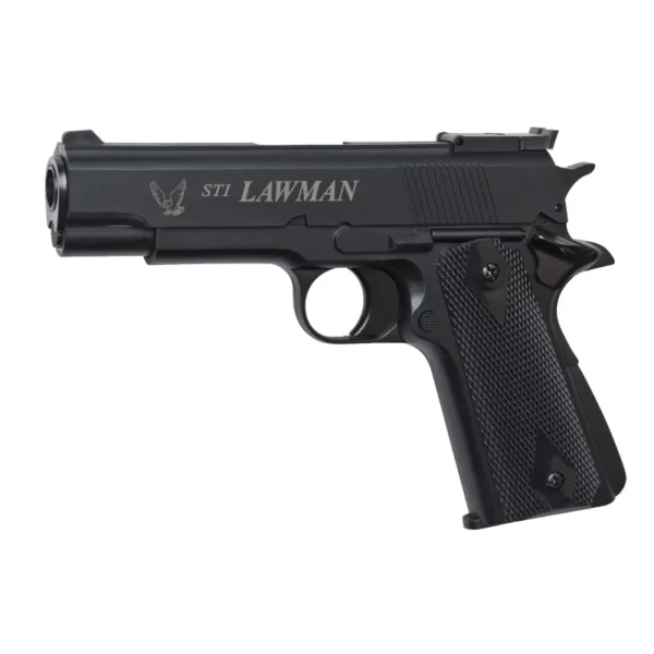 Είναι μια εξ ολοκλήρου μαύρη εκδοχή του STI Lawman. Είναι μία μοντέρνα έκδοση βασισμένη στο κλασικό 1911. Είναι αδειοδοτημένο από την STI Lawman αυτό το ημι-αυτόματο πιστόλι Airsoft με σταθερό Hop UP και γεμιστήρα που δέχεται 14 BB’s. Το πίσω σκοπευτικό είναι ρυθμιζόμενο και το προωθητικό αέριο αποθηκεύεται στην λαβή του πιστολίου. Το άνοιγμα του κλείστρου έχι ασημί χρώμα.