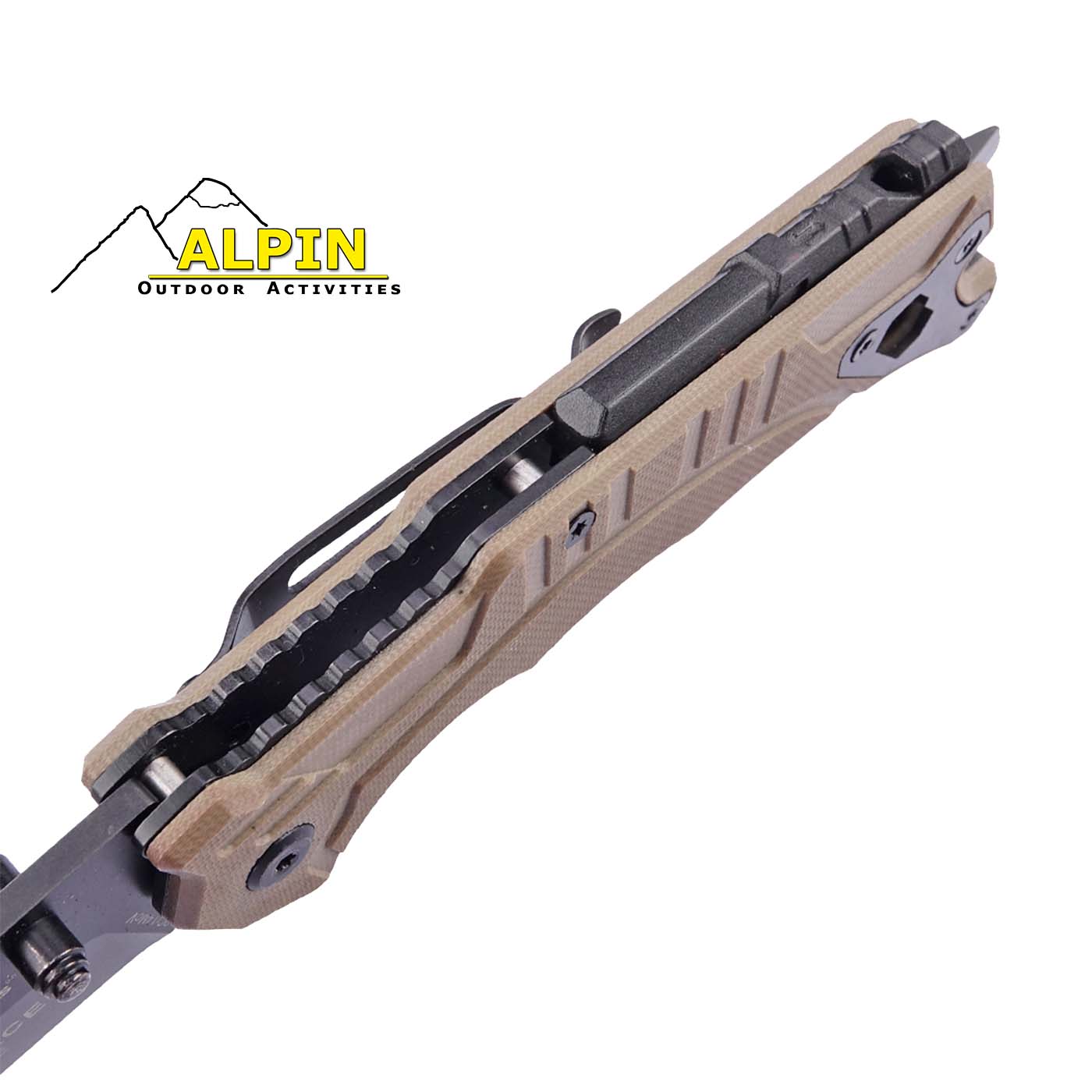 Η εργονομική λαβή από G10 (ίνες υαλονήματος υψηλής αντοχής) εξασφαλίζει σταθερό και αντιολισθητικό κράτημα, ενώ οι πολλαπλές λειτουργίες την καθιστούν ιδανική για κάθε σενάριο χρήσης.