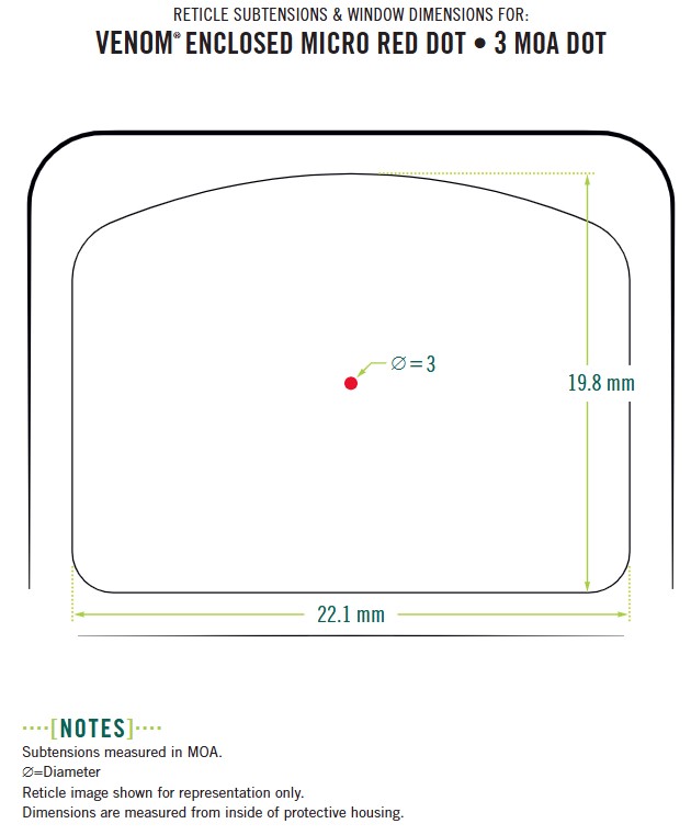 Για όσους αναζητούν αξιόπιστη απόδοση και λειτουργικότητα, ανεξάρτητα από το πόσο δύσκολες είναι οι συνθήκες, το Venom® Enclosed Micro Red Dot διαθέτει εύκολη τοποθέτηση και κλειστή σχεδίαση που προστατεύει από βροχή, σκόνη ή χιόνι. Με μεγάλο παράθυρο σκόπευσης, ενεργοποίηση με κίνηση και ρυθμιζόμενη φωτεινότητα, προσφέρει λειτουργία, εργονομία, ταχύτητα και ακρίβεια σε κάθε συνθήκη βολής.